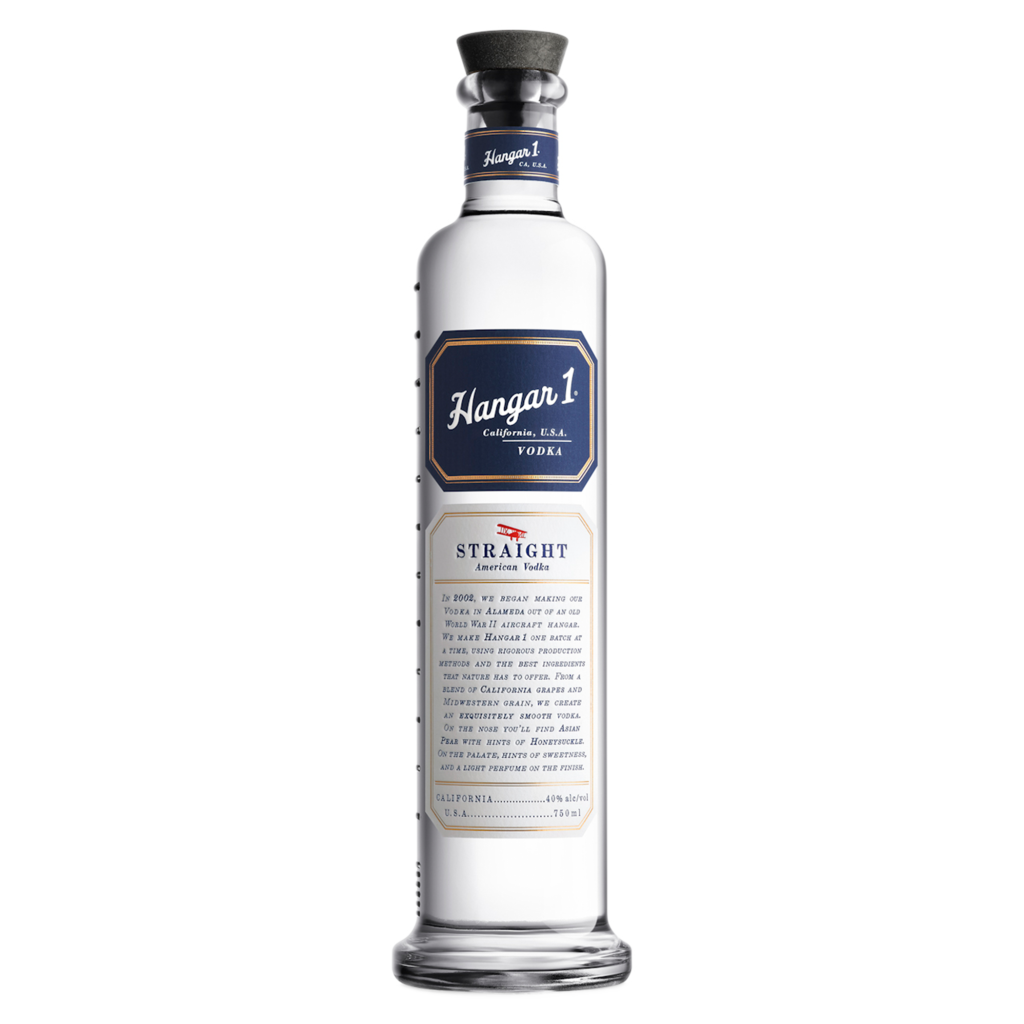 Hangar 1 Straight Vodka được nấu thủ công bằng cách sử dụng các loại ngũ cốc được chưng cất và rượu nho California.Thành phẩm là loại vodka cân bằng thoang thoảng hương vị trái cây.